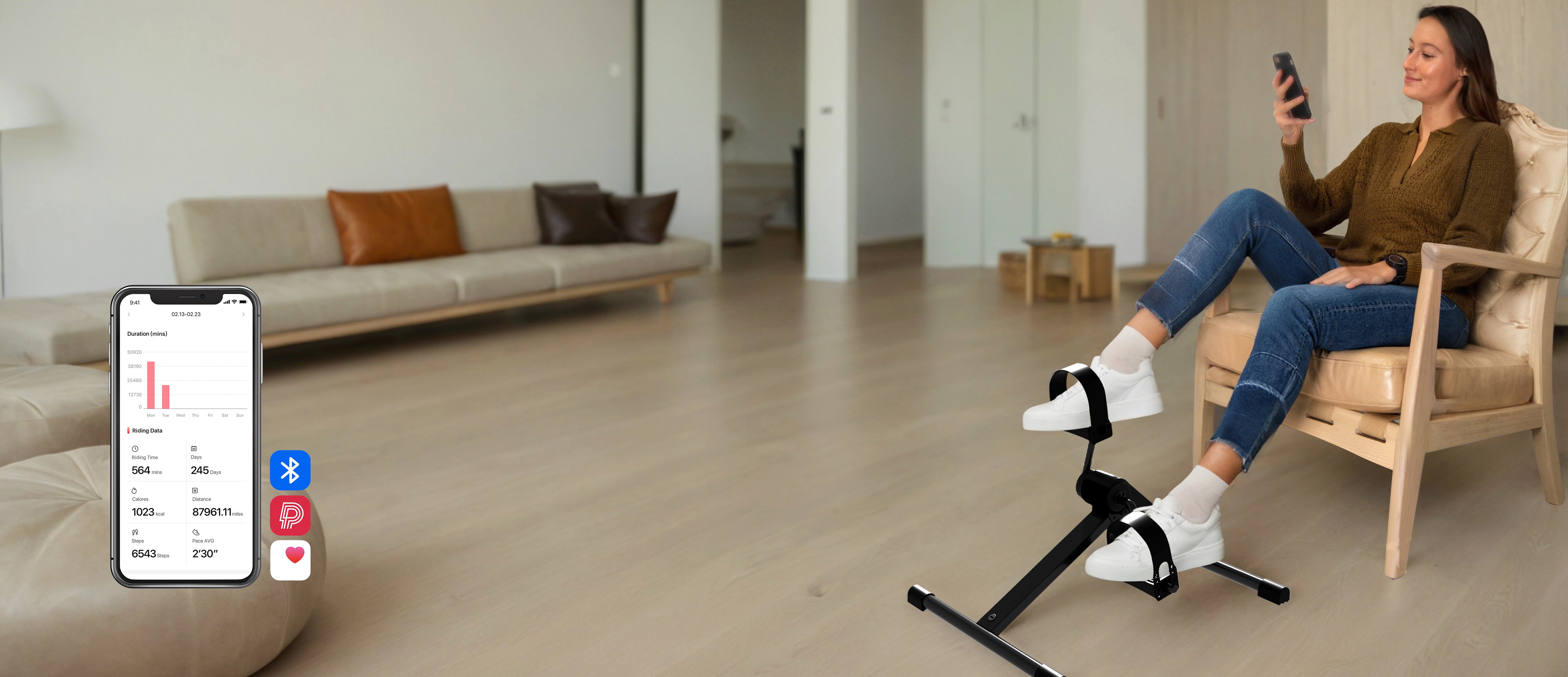 Die PitPat-App verbindet sich mit unserem intelligenten Untertisch-Fahrrad für Online-Rennen, Belohnungen, Datenverfolgung und eine lebhafte Radsport-Community.