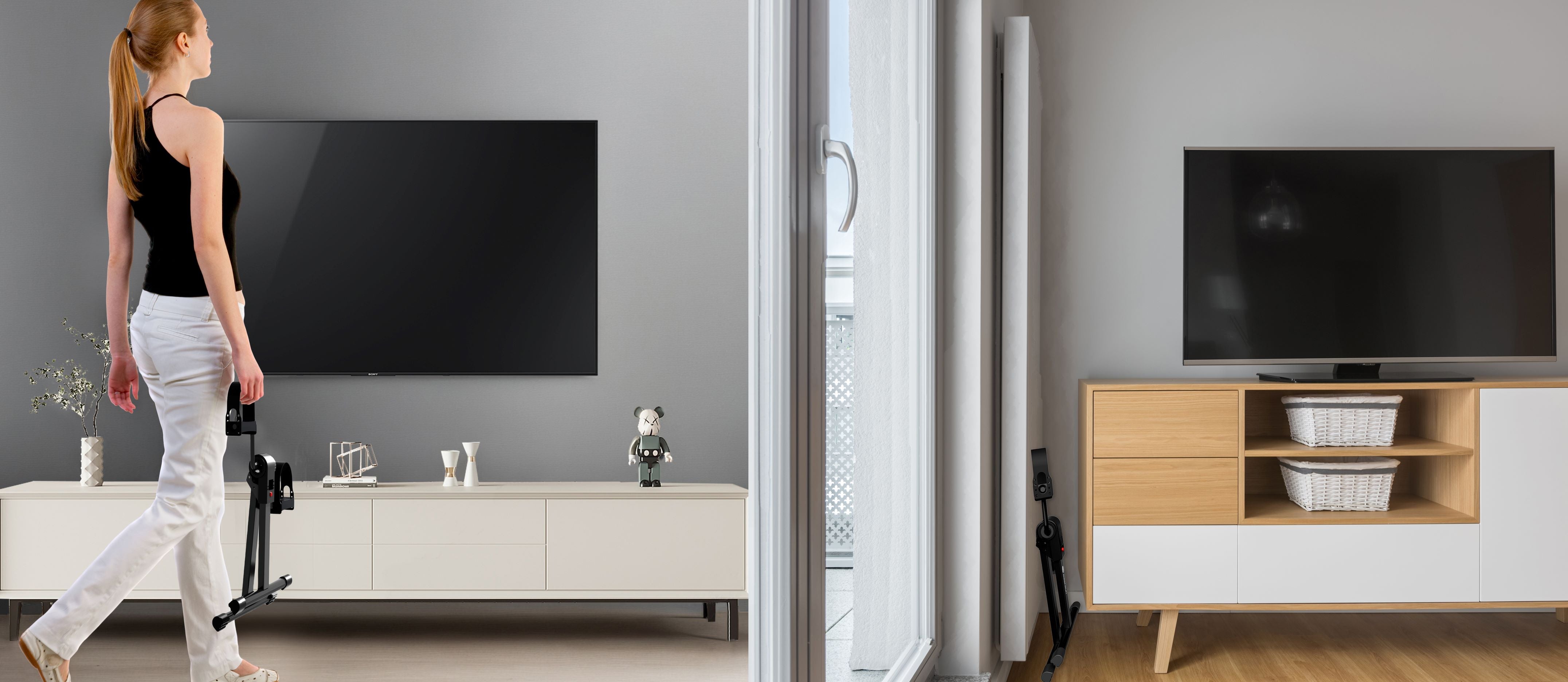 Zusammenklappbar auf eine kompakte Größe für eine einfache Lagerung. Nehmen Sie es mit in Ihr Wohnzimmer, Schlafzimmer oder an Ihren Arbeitsplatz. Ihr Training muss nie aufhören.