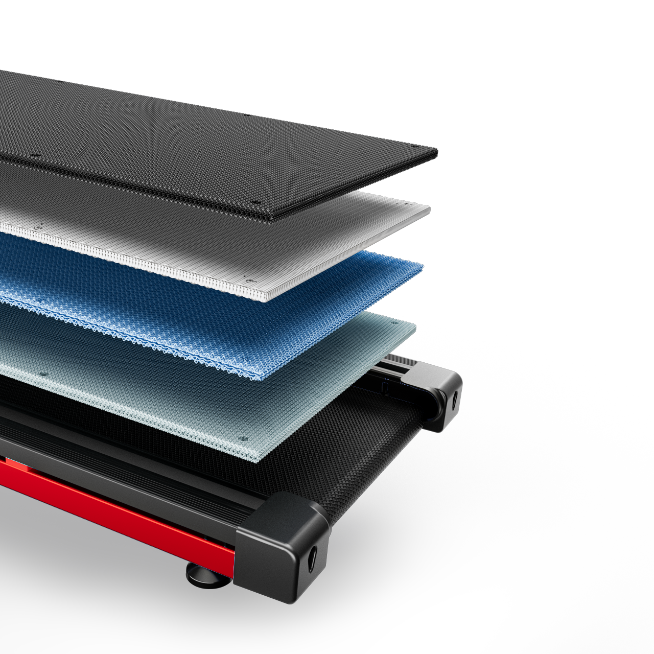 Das Laufband besteht aus einem einteiligen, fünf Schichten umfassenden High-Tech-Material, während die Oberfläche mit einer sechs Schichten starken, 0 % Zusatzstoffen enthaltenden, rein natürlichen Lackierung versehen ist. Die gesamte Struktur des Geräts besteht zu 90 % aus einteiliger Druckguss-Technologie, was eine außergewöhnlich hohe Stabilität gewährleistet und Ihr Training optimal unterstützt. Die Qualitätsstandards übertreffen die meisten vergleichbaren Produkte auf dem Markt um ein Vielfaches.