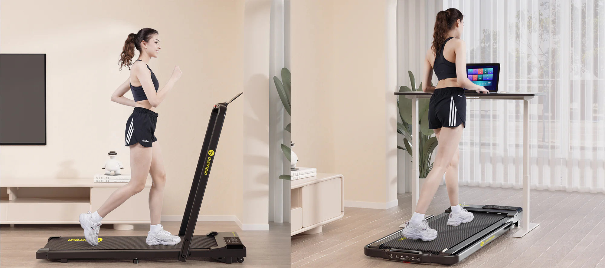 Entdecke das 2-in-1 Laufband: Walkmodus für aktive Pausen bis zu 6 km/h & Runmodus für intensives Training bis 12 km/h. Ideal für jedes Fitnesslevel. Bewegung neu definiert!