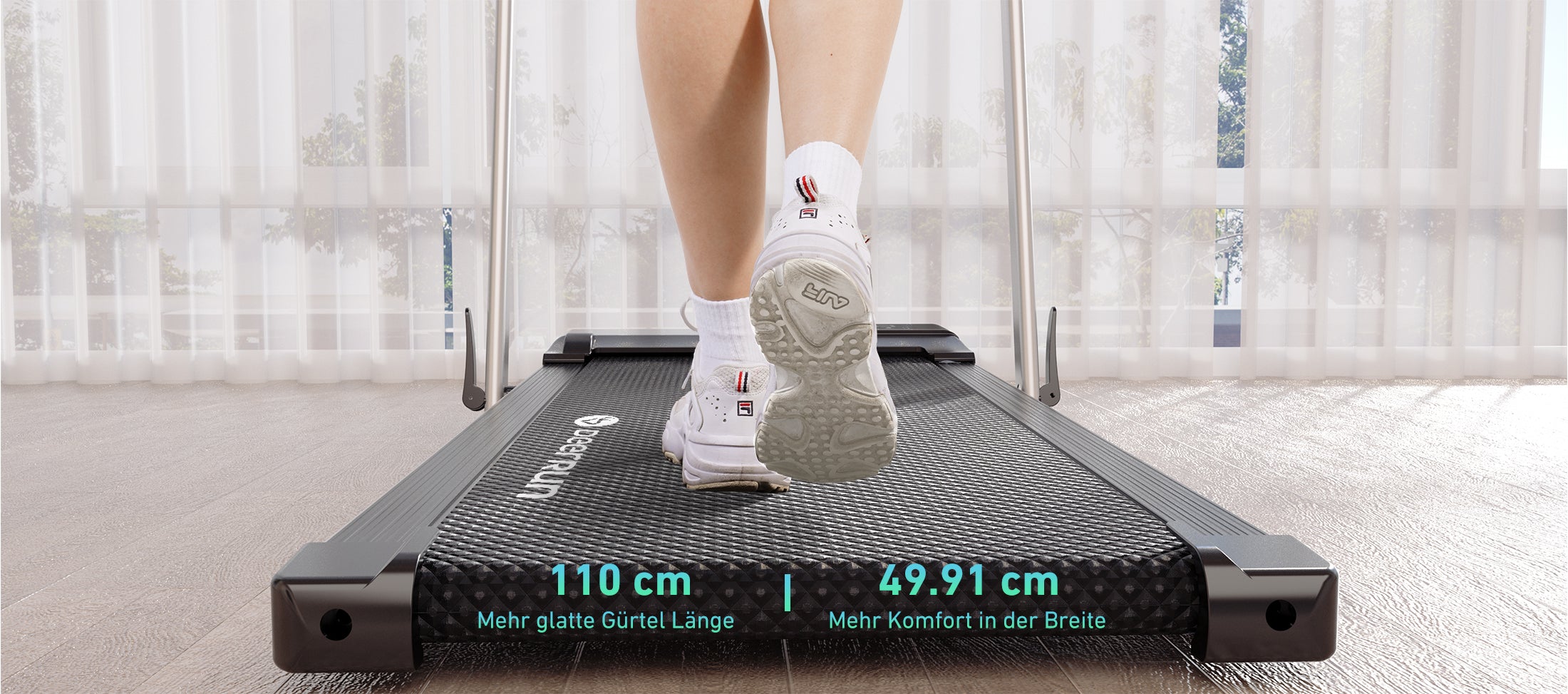 Bietet eine bequeme und sichere Plattform mit einem Laufgürtel, der das Gefühl des Laufens auf einer echten Strecke nachahmt. Genießen Sie das ultimative Heimtrainingserlebnis!