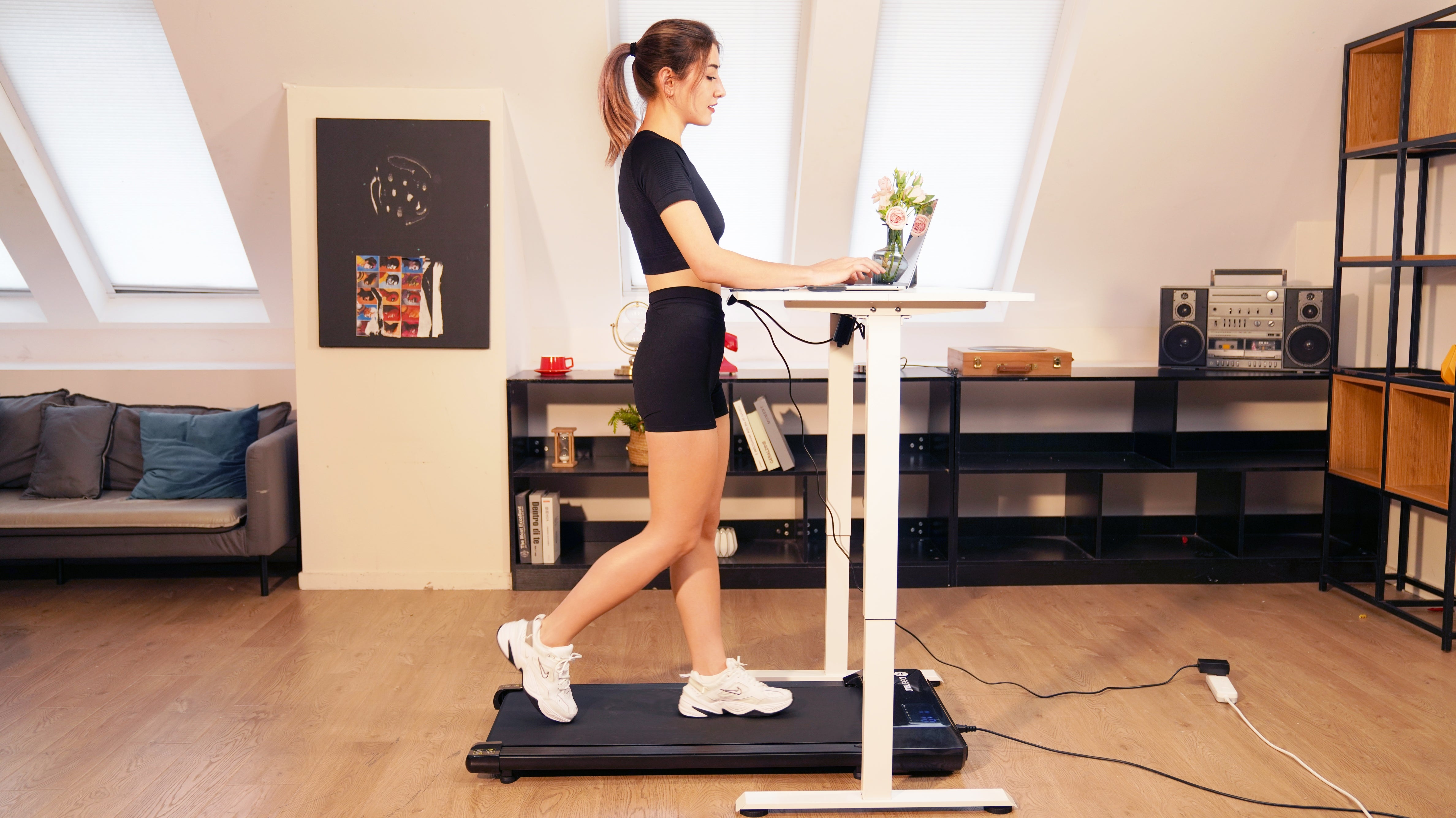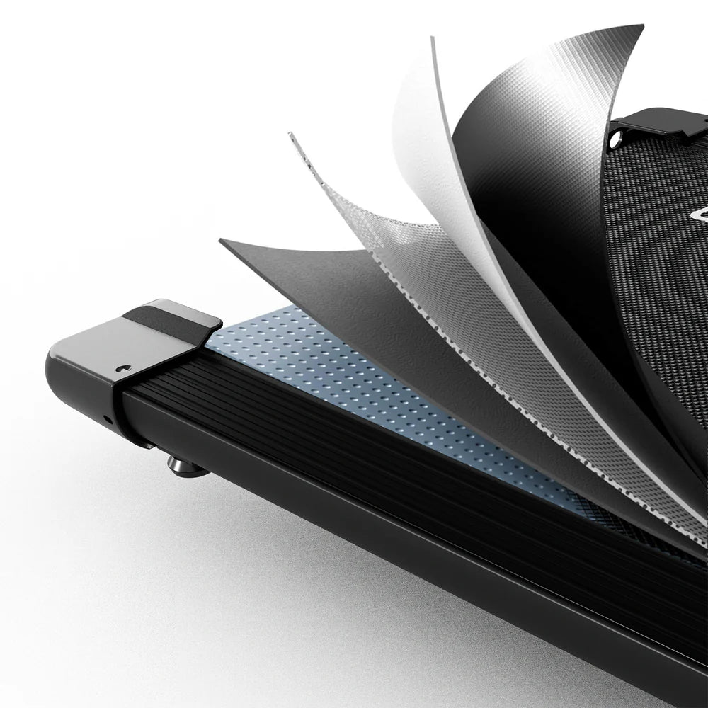 Der fünfschichtige Riemen des Under-Desk-Laufbands bietet in allen Größen gleichbleibenden Komfort, Haltbarkeit und Geräuschreduzierung. Genießen Sie hervorragenden Gelenkschutz und ein reibungsloses Training.