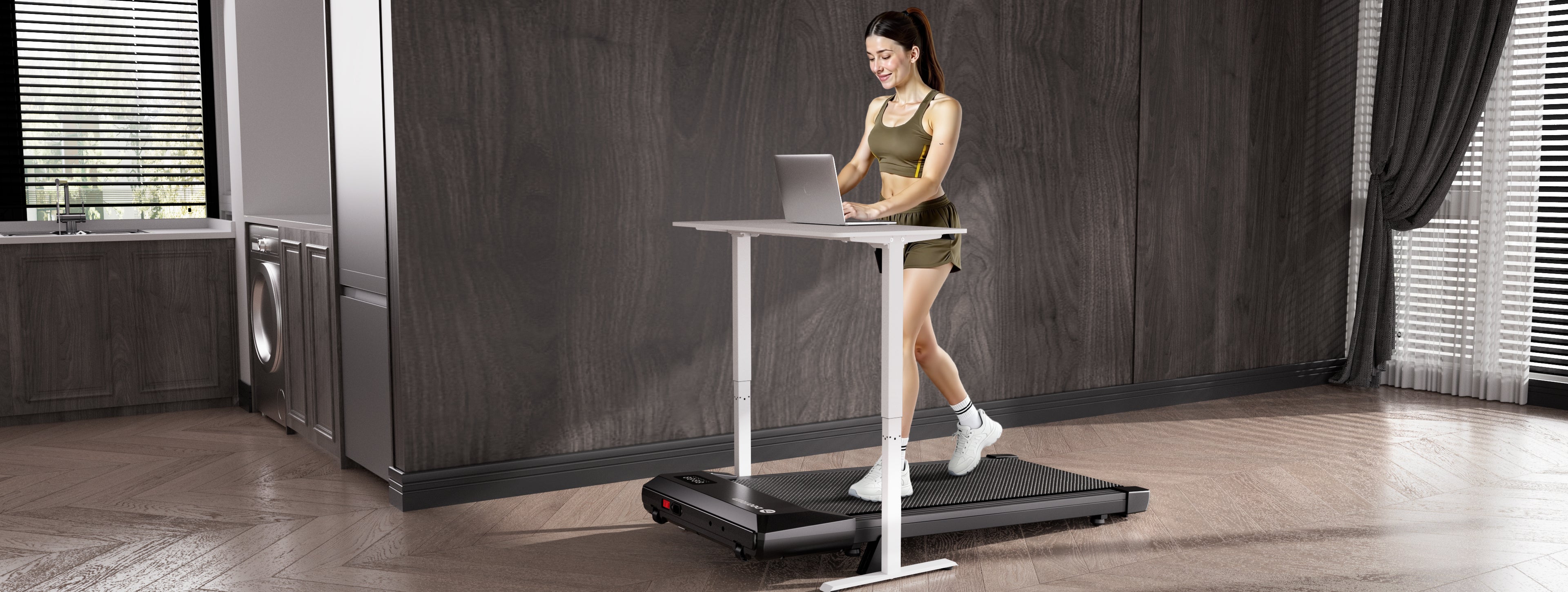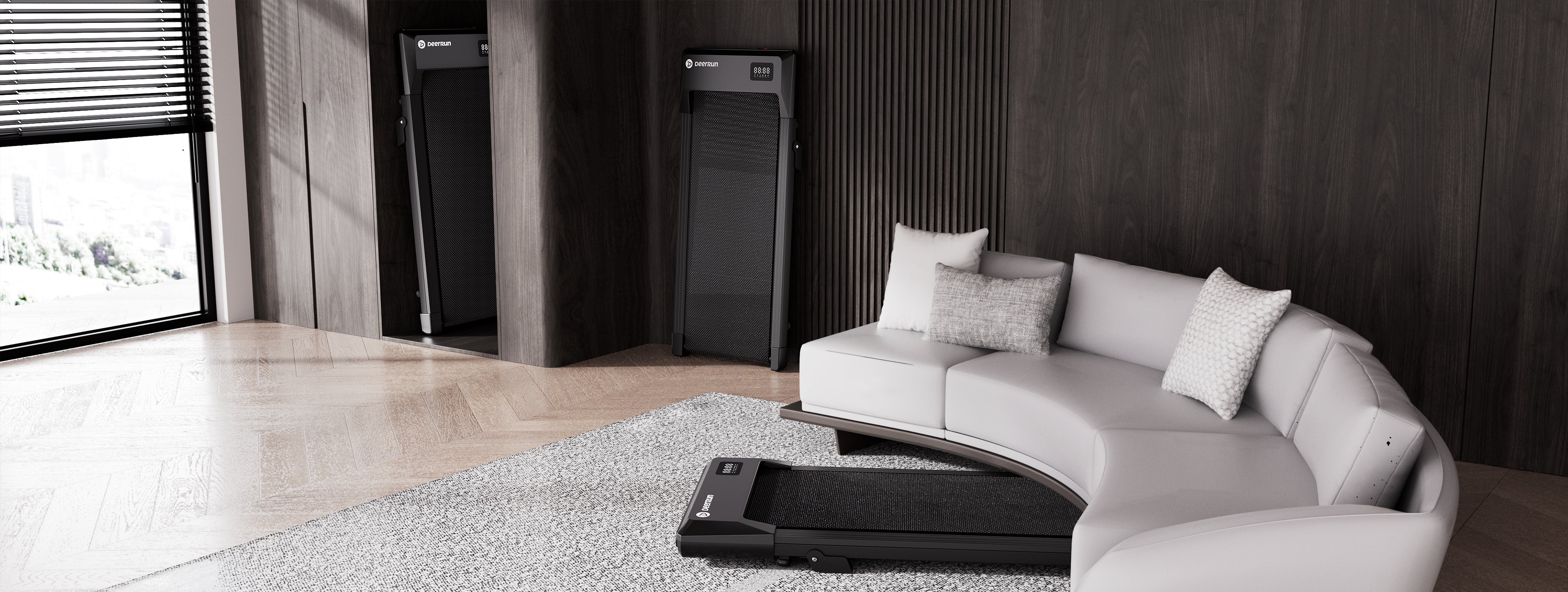 Das kompakte und dennoch leistungsstarke DeerRun Q2 Urban Plus Laufband für die Untertischmontage ist ideal für einen modernen, aktiven Lebensstil. Es bietet ein anspruchsvolleres Lauferlebnis mit einem geräumigen Laufband für komfortable Schritte und einer Steigung von 7%, die Ihr tägliches Training optimiert.
