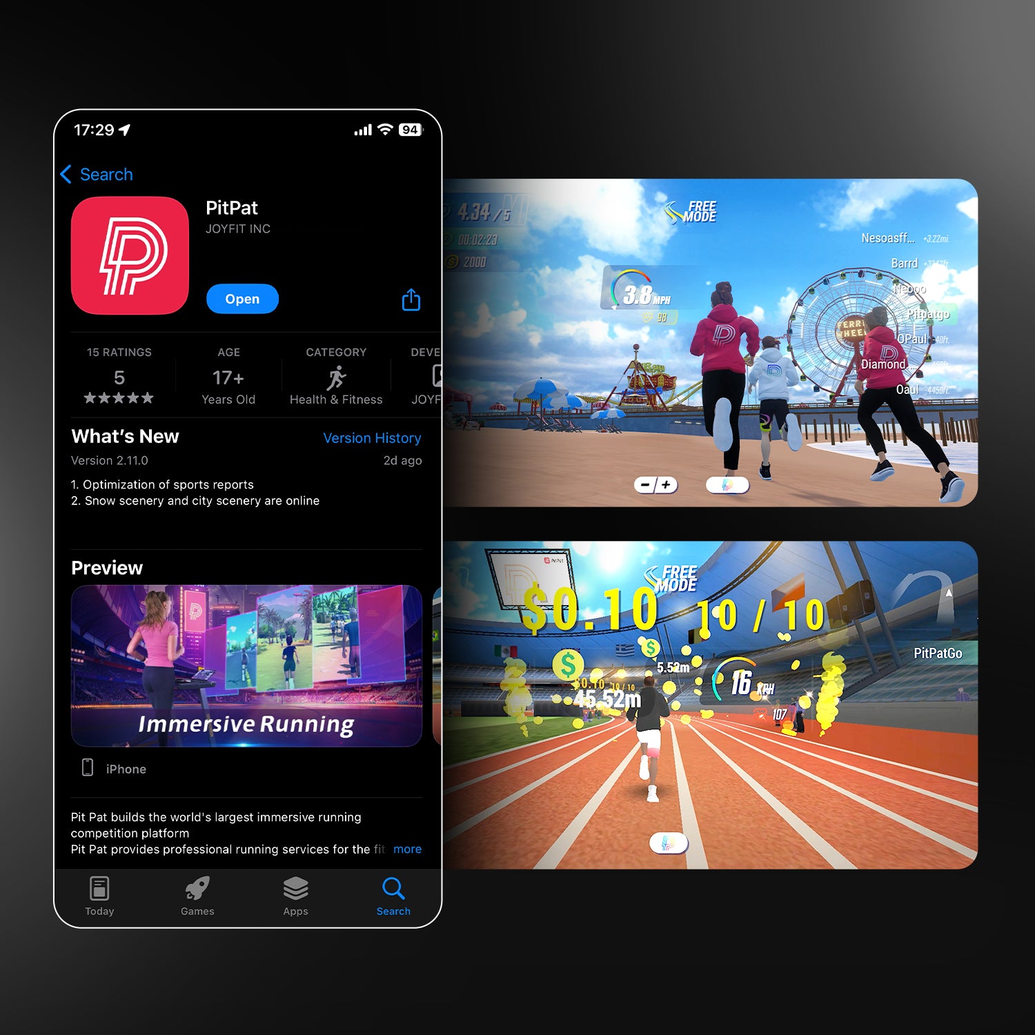 In der PitPat-App können Sie jederzeit Ihre Übungs daten überprüfen, an Trainings kursen teilnehmen, am virtuellen Laufen teilnehmen, online Freunde finden und mehr.