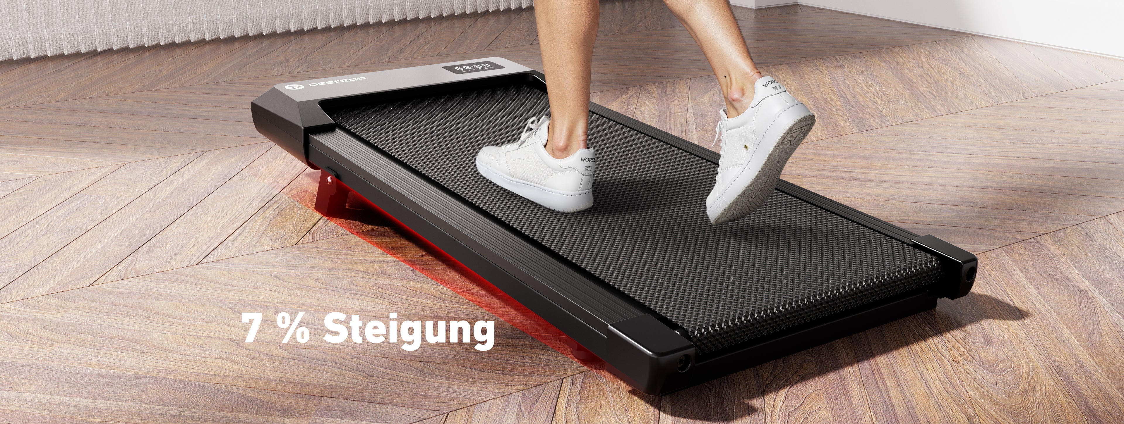 Das DeerRun Q2 Urban Walking Pad mit 7 % Steigung und Fernbedienung überzeugt durch hohe Stabilität, ein robustes Laufband und eine intuitive Bedienung. Die Fernbedienung ermöglicht eine einfache Steuerung, während das LED-Display Trainingsdaten. Sie kann den Kalorienverbrauch um bis zu 60–70 % im Vergleich zu flachem Gehen steigern.